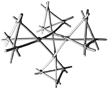 the weave-truncated-tetrahedra, occupy the cavities inbetween the